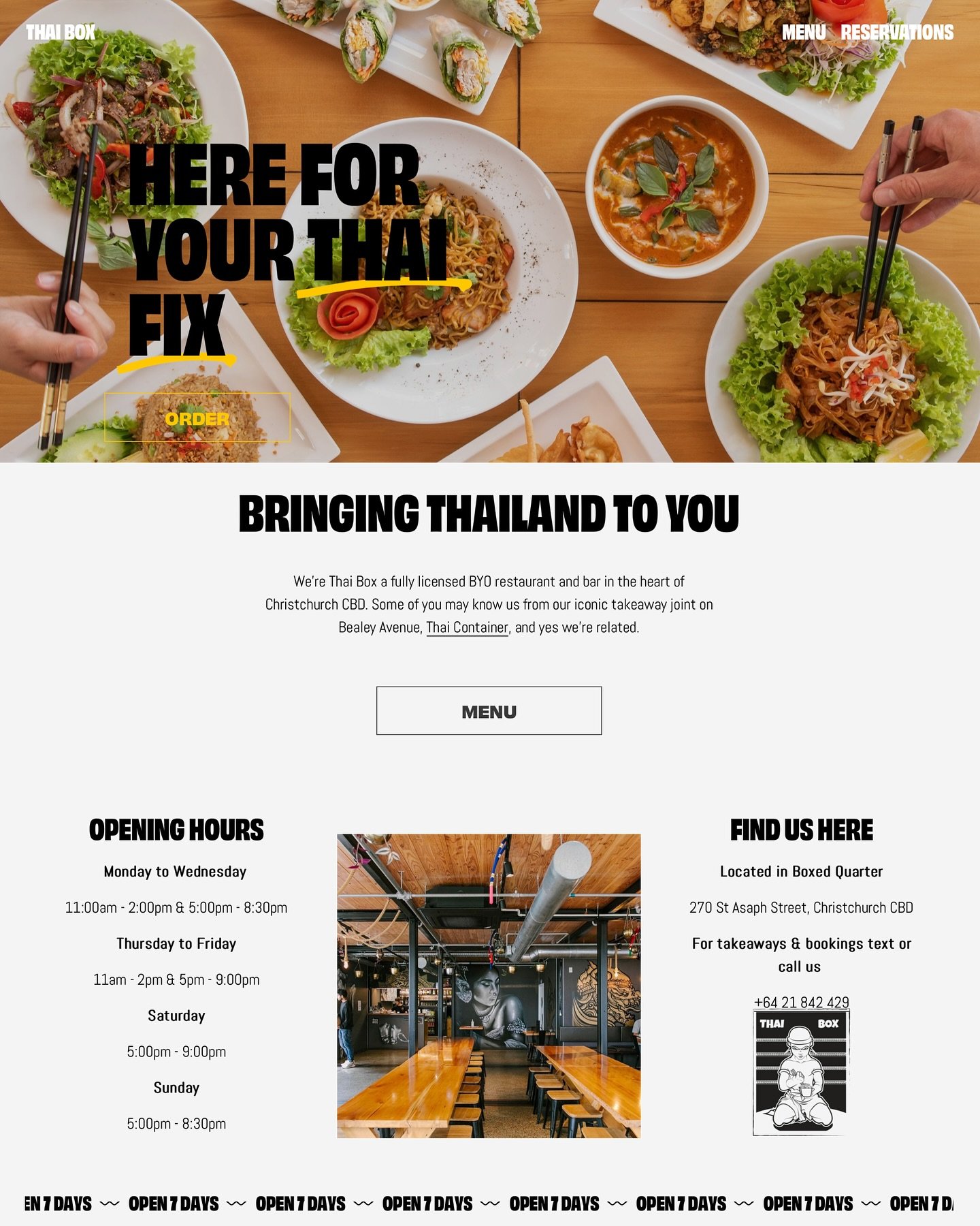 Weβre Thai Box a fully licensed BYO restaurant and bar in the heart of Christchurch CBD. Some of you may know us from our iconic takeaway joint on Bealey Avenue, Thai Container, and yes weβre related.
